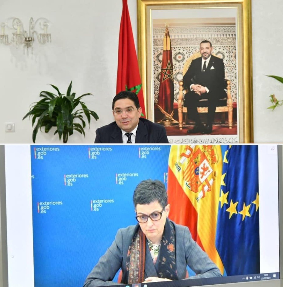 أجرى وزير الشؤون الخارجية والتعاون الإفريقي والمغاربة المقيمين بالخارج، ناصر بوريطة، اليوم الثلاثاء عبر تقنية التناظر المرئي، مباحثات مع وزيرة الشؤون الخارجية والاتحاد الأوروبي والتعاون الإسبانية، أرانشا غونزاليس لايا.
