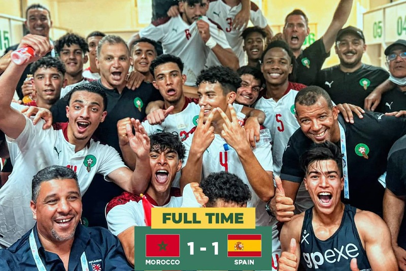 انتزع المنتخب الوطني المغربي لأقل من 18 سنة بطاقة التأهل الى دور النصف من منافسات كرة القدم “رجال”، المدرجة ضمن دورة ألعاب البحر الأبيض المتوسط (وهران 2022 )،عقب تعادله مع نظيره الاسباني بهدف لمثله ،وذلك برسم الجولة الثالثة من المجموعة الأولى.