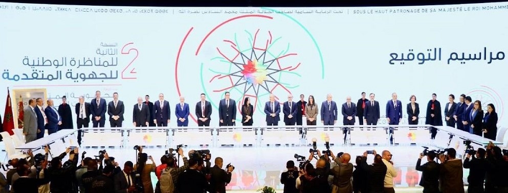 خلال الجلسة الافتتاحية لأشغال المناظرة الوطنية الثانية للجهوية المتقدمة، التي تحتضنها مدينة طنجة، جرى التوقيع على أربع اتفاقيات- إطار بين عدد من القطاعات الحكومية ومجالس الجهات الاثنتي عشرة بالمملكة. وتهدف هذه الاتفاقيات إلى تسريع تنزيل الجهوية المتقدمة وتعزيز التعاون بين الجهات والحكومة في المجالات الاستراتيجية المتعلقة بالماء والتنقل وحماية البيئة.