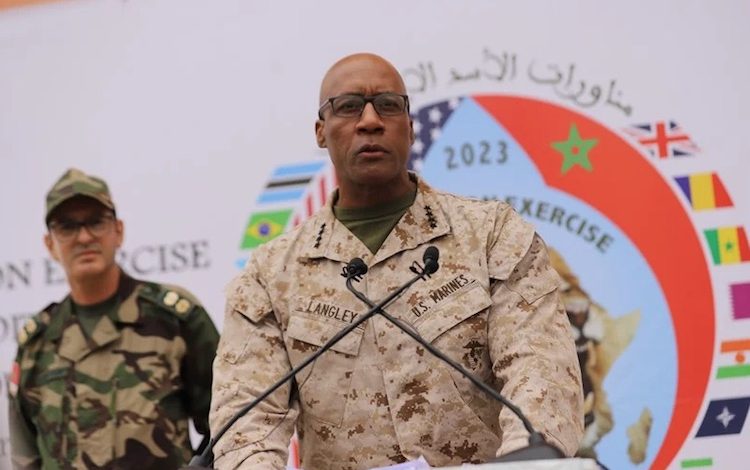 و جدد لانغلي التأكيد، من قلب الصحراء المغربية، على أن “الإستراتيجية الأمريكية في القارة الإفريقية لا تقوم فقط على استراتيجية دفاعية تُعززها مناورات الأسد الإفريقي وحدها؛ بل نعتمد كذلك بالموازاة جهودا مشتركة في مسارات الدبلوماسية وقضايا التنمية في مختلف أنحاء القارة”.