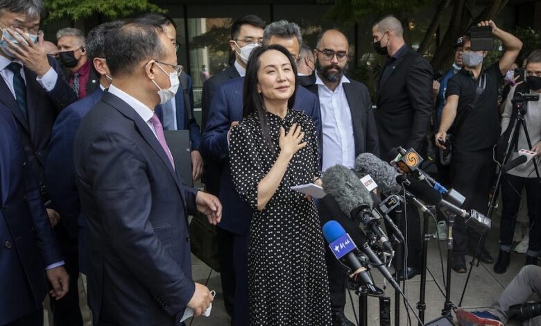 المديرة المالية لـ”هواوي” تغادر كندا متوجهة إلى الصين بعيد إطلاق سراحها بموجب تسوية