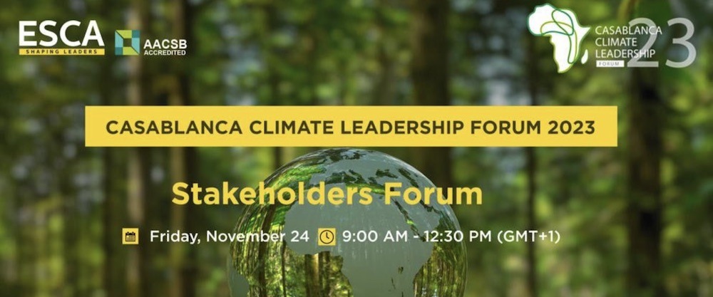 وجاء في نص البلاغ أن منتدى القيادة المناخية بالدار البيضاء CCFL 2023، هو اجتماع سنوي فريد من نوعه تنظمه مدرسة الأعمال ESCA بشراكة مع شبكة مدارس إدارة الأعمال من أجل القيادة المناخية بإفريقيا (BS4CL Africa).
