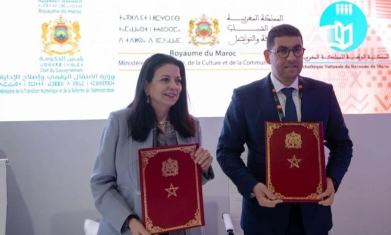 وقعت وزارة الانتقال الرقمي وإصلاح الإدارة ووزارة الشباب والثقافة والتواصل، أمس الأربعاء بمراكش، اتفاقية شراكة تروم تعزيز رقمنة الخدمات المقدمة من طرف المكتبة الوطنية للمملكة المغربية، وذلك على هامش الدورة الثالثة من معرض “جيتيكس إفريقيا المغرب” المنظم من 14 إلى 16 أبريل الجاري.