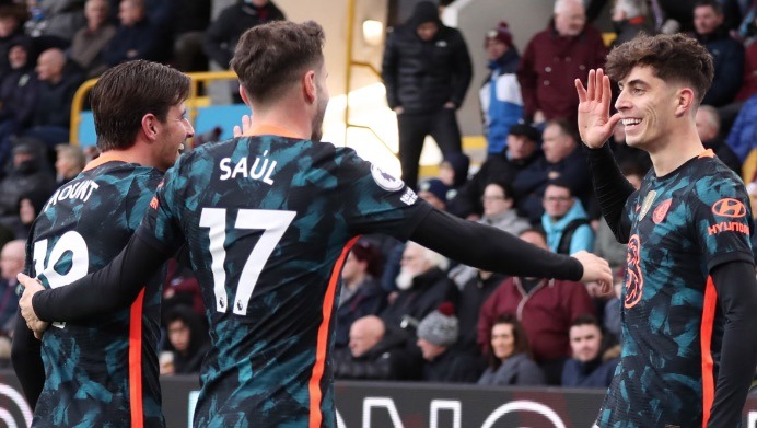 وسجل رباعية “البلوز” كل من ريس جيمس (د 47) ، وكاي هافيرتز (د 52 و55)، وكريستيان بوليسيتش (د 69).
