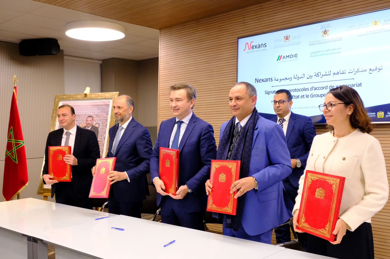 وقد جرت مراسم التوقيع بحضور رياض مزُّور، وزير الصناعة والتجارة، وليلى بنعلي، وزيرة الانتقال الطاقي والتنمية المستدامة ، ومحسن الجزولي، وزير الاستثمار والالتقائية وتقييم السياسات العمومية، وعبد الرحيم الحافظي، المدير العام للمكتب الوطني للكهرباء والماء الصالح للشرب ، وعلي صديقي، المدير العام للوكالة المغربية لتنمية الاستثمارات والصادرات، وكريستوفر غيران Christopher Guerrin، المدير العام لمجموعة نيكسان.